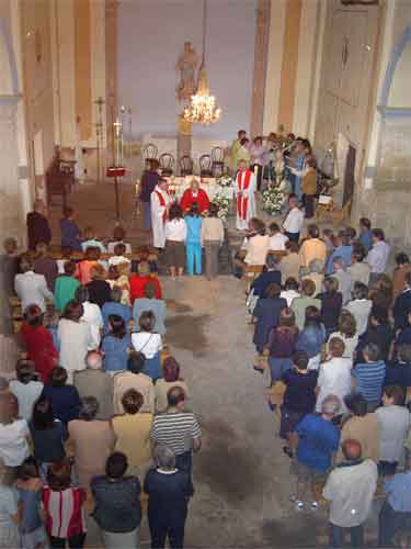 ![]() Interior del templo parroquial en un momento de la ceremonia. Al fondo la coral Voces Amigas |